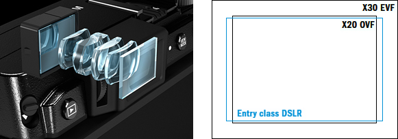 **Rekordowy wśród dostępnych na rynku wizjerów współczynnik powiększenia. Powiększenie ok. 0,65x przy użyciu obiektywu 50 mm (odpowiednik formatu 35 mm) ustawionego na nieskończoność z dioptrią -1,0 m-1.***Badania przeprowadzone przez Fujifilm, stan na sierpień 2014 r.